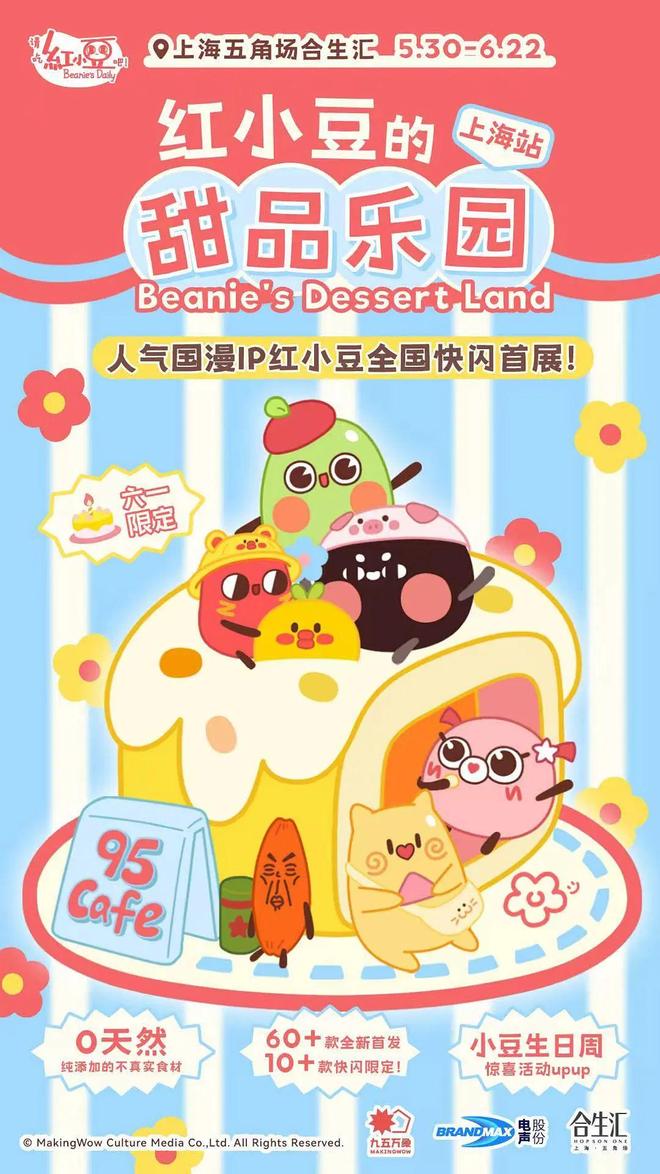 《请吃红小豆吧!》全国快闪巡展首展【红小豆的甜品乐园】于2025年5月30日至6月22日登陆上海五角场合生汇。本次展览以动画中治愈系的甜品世界为灵感,打造沉浸式梦幻场景。现场将推出超60款全新首发衍生品,活动期间还将开放人偶巡游互动、红小豆6.1生日派对等特色环节,粉丝可参与打卡集章,感受甜度超浓的治愈氛围。另外,活动将发布【红小豆的AI智能体版本1.0】,粉丝可进行互动体验。