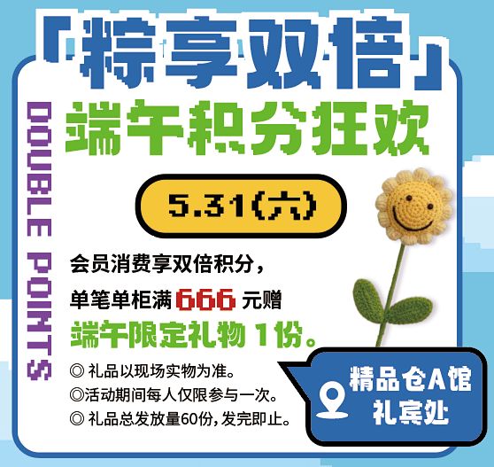 上海国际时尚中心推出“粽享双倍”端午积分狂欢,5月31日会员消费享双倍积分,单笔单柜满666元赠端午限定礼物1份。5月31日到6月1日更有亲子手作香囊DIY活动,快来感受传统文化和手工艺的独特魅力吧。