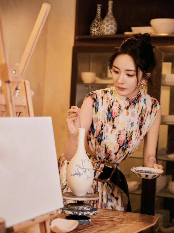 更为引人注目的是,她手中或身旁的中式瓷器道具,不仅是装饰,更如同画中有画,进一步加强了整体的中式氛围,使画面在艺术的韵味中饱含故事感。此时的杨幂,如同中式时尚的代言人,以其穿搭诠释了中式风格在现代语境下的无限可能性,其所呈现的,不止是视觉的盛宴,更是对时尚理念的大胆创新。