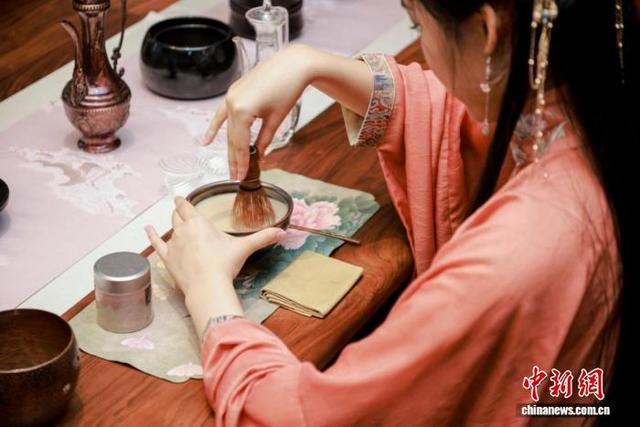 “本次新中式成人礼将茶美学融入其中,现场演展示宋代点茶,将传统文化以年轻人喜闻乐见的方式进行表达。茶的冲泡、茶具的选择、茶汤的色泽,都是可触可感的美学载体。”活动策划者周昱利说,中华文化的传承,要从传统美学和接地气的生活方式入手,让年轻人在充满仪式感的茶香、乐声、衣袂翩跹中感受传统文化之美。