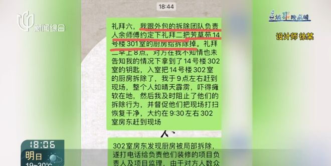 记者也找到了这户业主求证,对方表示,他们家最近刚刚启动老房新装工程,眼前是要把原来的厨卫全部打掉,这才找到了设计师徐某。至于徐某是哪家公司的,301的业主也不知道。
