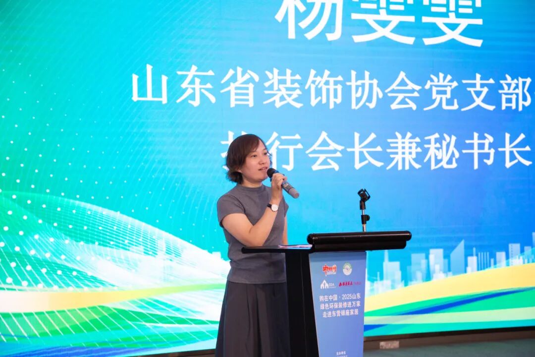 山东省装饰协会党支部书记、执行会长兼秘书长杨雯雯表示,协会始终秉持“服务行业、服务企业、服务社会”的宗旨,积极发挥桥梁纽带作用。联合政府部门、行业协会以及会员企业,共同推动绿色建材走进千家万户,让百姓用得安心、住得舒心,共同打造绿色、健康、可持续的居住环境。