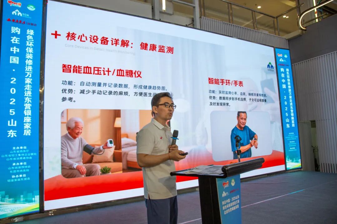 随着社会老龄化程度加深,适老化改造已成为家装消费的重要方向。而由山东省装饰协会编制的“适老化产品消费指南”也在本次活动正式与大家见面。山东省装饰协会设计总监侯飞登台讲解,指南通过对当前适老化产品的详细介绍,从空间设计、安全细节、产品选择等多个方面,为家庭装修适老化改造提供了科学参考。